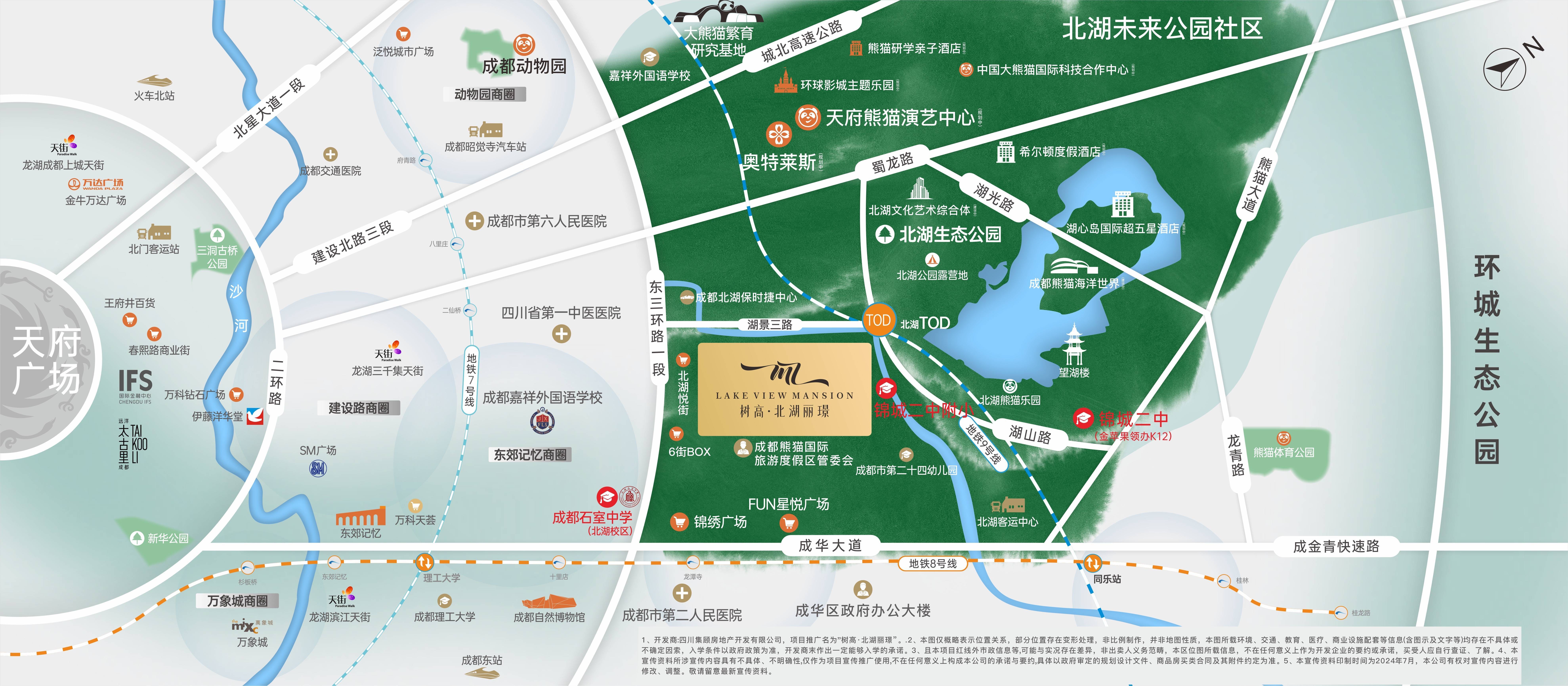 近邻总面积约2.5平方公里北湖站TOD(规划中),轨道交通8、9、32号线号线号北湖TOD站(规划中)以及蜀龙路、成华大道、熊猫大道、东三环等立体交通畅达全域。