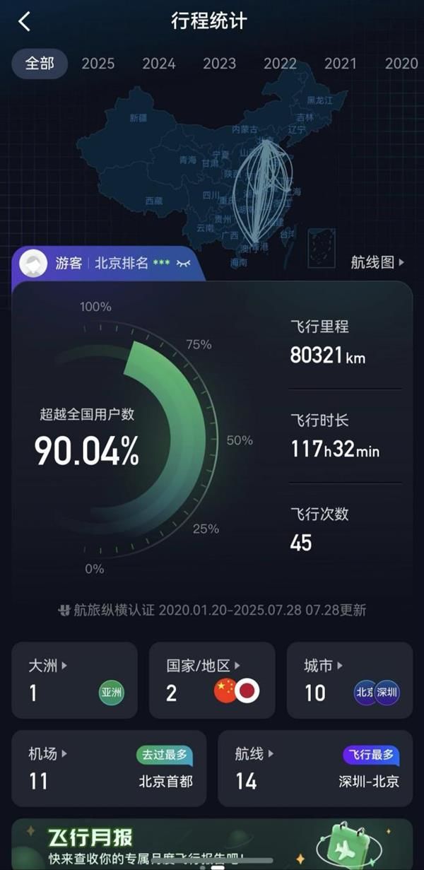 · 飞行轨迹可视化,家人行程动态守护:想看自己的飞行轨迹?只需在“行程”-“已结束”页面点击上方行程数据,即可查看炫酷的3D航线图,解锁专属的飞行里程成就和年度飞行报告!如果想要了解家人的行程,在“我的”-“家庭行程共享”里添加家庭成员,便可自动接收家人出票、安检、航班起飞到达等信息推送,还能帮家人办理线上值机选座,时刻关注家人乘机安全。
