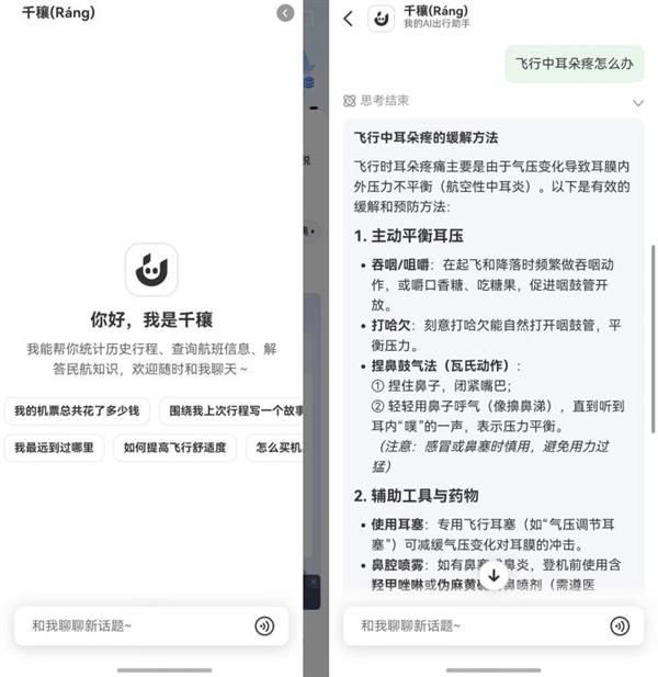 匆忙赶飞机不清楚航班信息?不知道行李箱是否要托运?首页点击图标唤醒千穰AI,航班动态、行李规则、乘机疑问等秒级精准解答。
