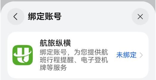 绑定航旅纵横账号小Tips:桌面左滑进入负一屏,点击头像 右上角...” 动态管理 绑定账号(已安装) 绑定航旅纵横。